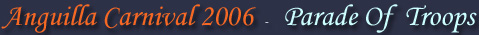 The 2006 Anguilla Carnival Parade was full of music, color, sweat and joy. To say the dancing was "wild" at some point would be an understatement! Here we display some which help to show the faces and energy of the Parade of Troops 2006. The sun was bright and hot, the music loud and the colors were fantastic !